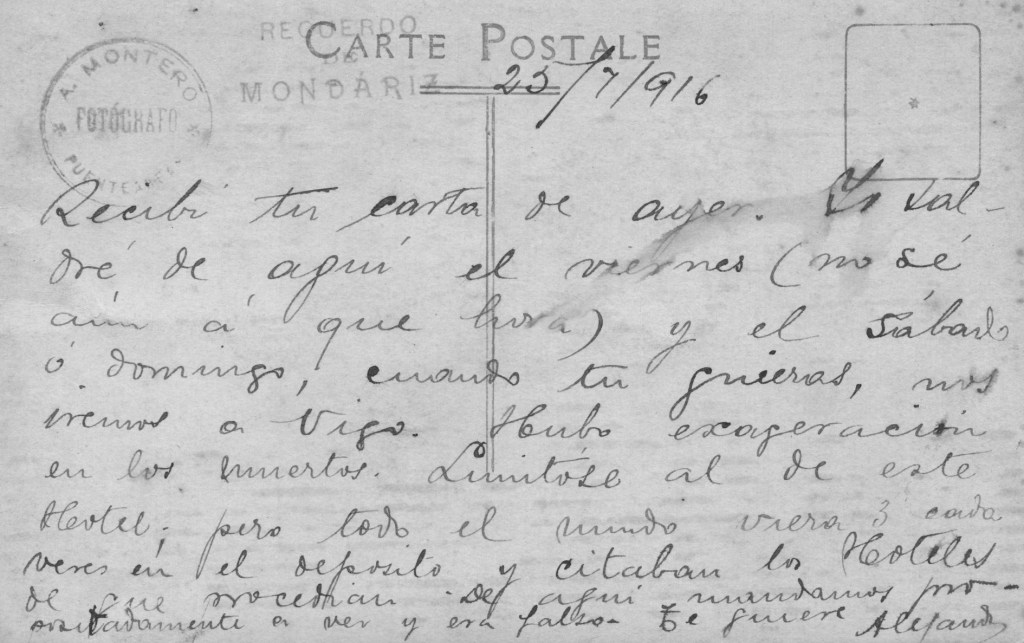 En Mondariz Balneario. 23 xullo de 1916 (Reverso da fotografía anterior)