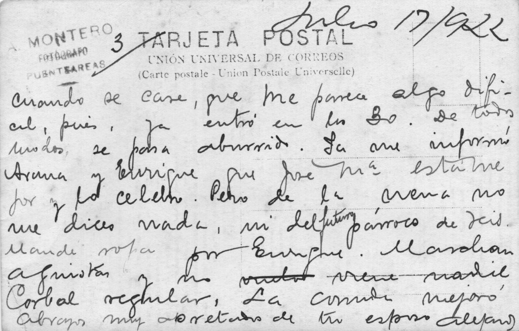 Viana en Mondariz Balneario. 17 de xullo de 1922 (Reverso da imaxe anterior)
