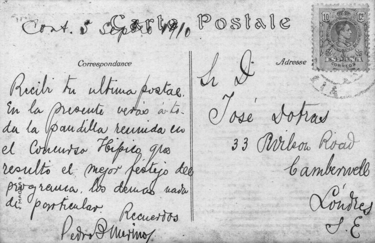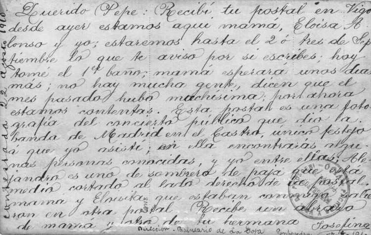 Viana nun concerto en Vigo. 17 de agosto de 1910 (Reverso da imaxe anterior)
